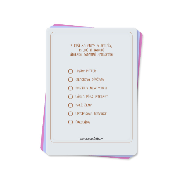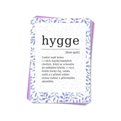Dánské Hygge je nejen o zemitých barvách a huňaté dece, ale především o hřejivém pocitu bezpečí a pohody. A ten jsme se vám snažili navodit pomocí zadních stran karet. Čeká vás na nich spousta překvapení. Ať už se díky speciálně sestaveným playlistům ocitnete v horské chatě s praskajícím krbem nebo si podle přiložených receptů upečete něco dobrého s vůní skořice, věříme, že vás severská krása pohltí stejně jako nás.