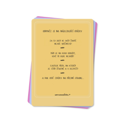 Vedle inspirace na to, jak karty používat, najdete v balení také dřevěný stojánek. Stačí do něj vložit vybranou kartu a o originální doplněk máte postaráno.