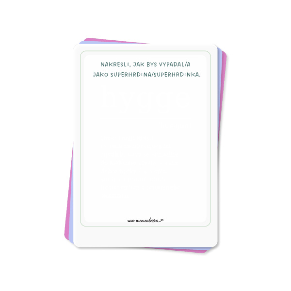 Víme, že i když je dětství plné her a smíchu, občas dokáže potrápit i ty největší hrdiny. Proto jsme motivy těchto 20 karet sestavili tak, aby byly vašim dětem parťáky v dobrém i zlém. Mezi kartami tak najdete například ilustrace na téma odvahy, laskavosti, strachu či skutečného přátelství.