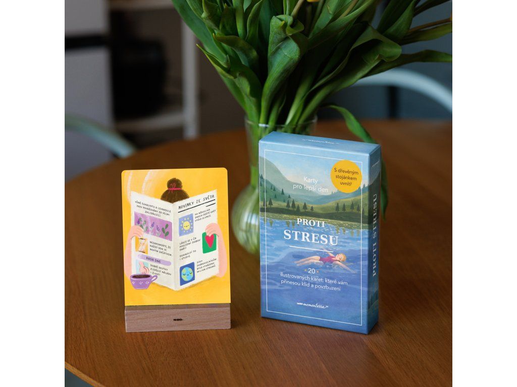 Vedle inspirace na to, jak karty používat, najdete v balení také dřevěný stojánek. Stačí do něj vložit vybranou kartičku a o motivační doplněk máte postaráno.