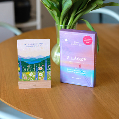 Vedle inspirace na to, jak karty používat, najdete v balení také dřevěný stojánek. Stačí do něj vložit vybranou kartičku a o originální doplněk máte postaráno.