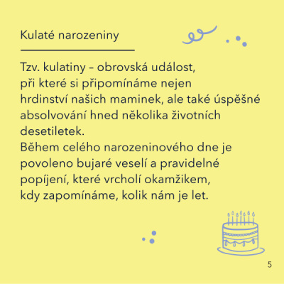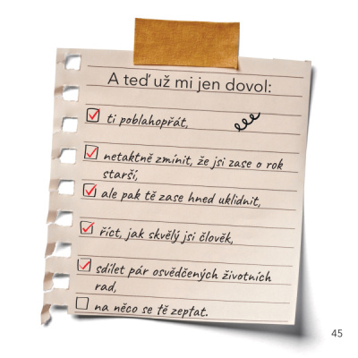 Tahle knížka je sice rozměrově menší, zato obsahově předčí i legendární Bravíčko. 56 celobarevných stran v sobě střídá humor, československou nostalgii a více či méně taktní narážky na věk, které vás ani oslavence z řad mileniálů nepřestanou bavit. Zkrátka jedna velká narozeninová párty v duchu Dalibora Jandy, videokazet a céček!
