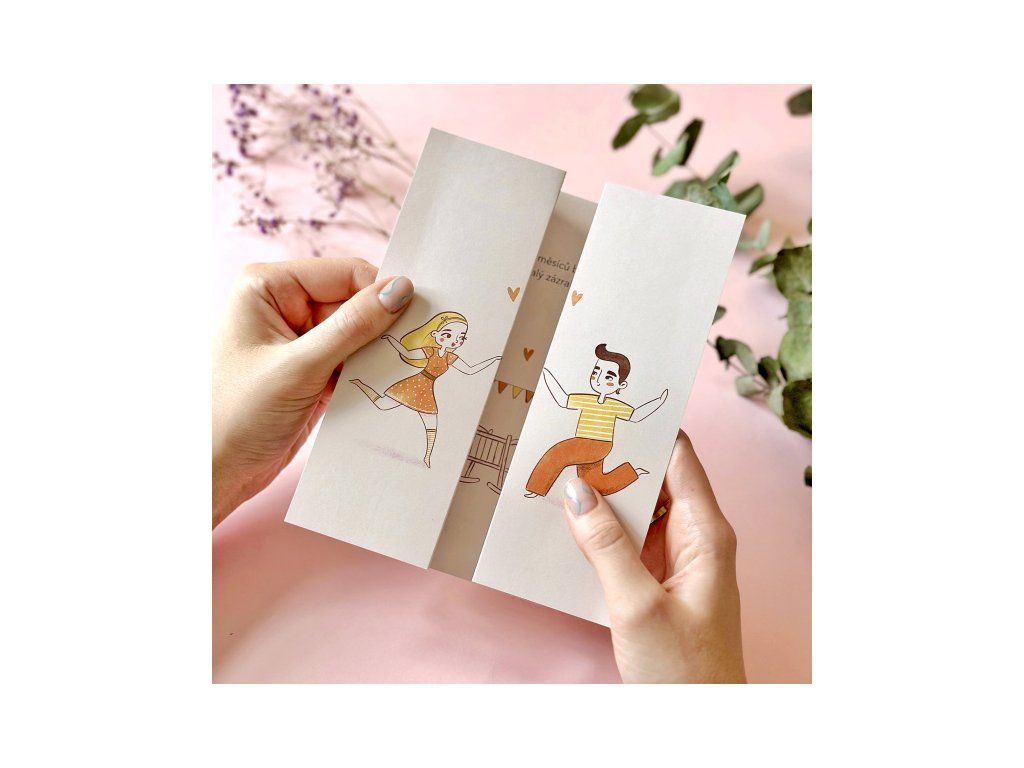 Ilustrované přáníčko je něžný a kreativní způsob, jak sdělit svému okolí, že se vaše rodina brzy rozroste. Na první pohled působí jako roztomilé papírové přání, ale po otevření odhalí kouzelný vzkaz: „Za pár měsíců budeme o jeden malý zázrak šťastnější!“