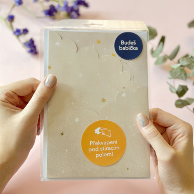 Toto přáníčko přináší víc než jen slova – daruje emoce, překvapení a radost. Nechte nastávající babičku objevit zlatou stírací hvězdu a sledujte její reakci, když setře kouzelné tajemství ukryté uvnitř.