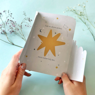 – Obdarovaný přání otevře a objeví zlatou stírací hvězdu.