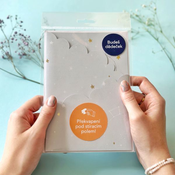 Toto přáníčko přináší víc než jen slova – daruje emoce, překvapení a radost. Nechte nastávajícího dědečka objevit zlatou stírací hvězdu a sledujte jeho reakci, když setře kouzelné tajemství ukryté uvnitř.