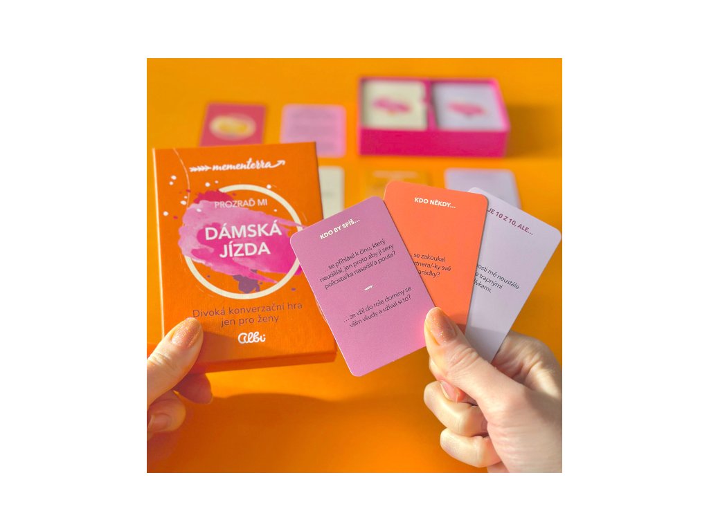 Hledáte originální program na dámskou jízdu, rozlučku se svobodou nebo na obyčejný domácí holčičí večer, kam je mužům vstup zakázán? Pak jste tu správně! Tuhle nekorektní konverzační karetní hru jsme totiž vytvořili speciálně pro dámy. Odhalíte při ní nečekaná tajemství svých kamarádek, zažijete nezapomenutelné chvíle, na které byste možná občas raději zapomněly a rozhodně se od srdce zasmějete.