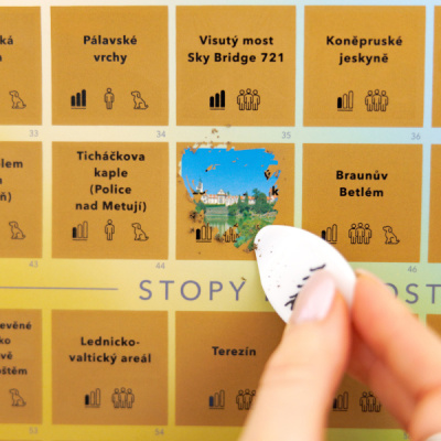 Zvolte si destinaci podle své nálady nebo náročnosti. Po návštěvě políčko setřete pomocí přiloženého škrabátka.
