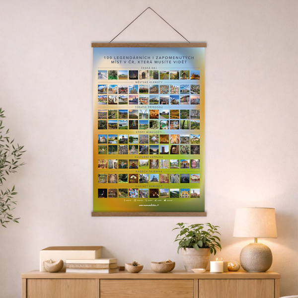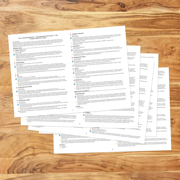 Dárek: Jako bonus jsme vám k plakátu přibalili také stručného průvodce všemi 100 místy, ve kterém najdete informace o lokalitě, vstupném, zajímavostech a také tipech, s čím daný výlet spojit.